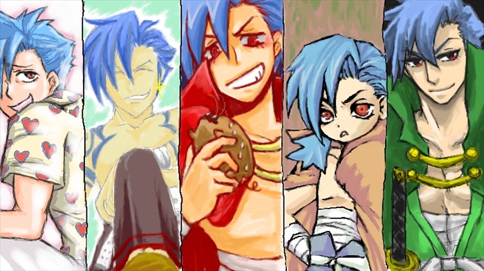 左から→駄ニキ(ペンペンさん)、普通アニキ(Jさん)、赤マントアニキ(猫谷さん)、子アニキ(碧羽さん)、グレパラアニキ(たすく)