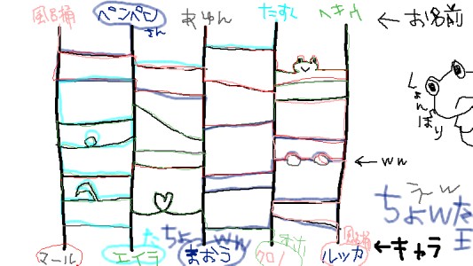 描き手様が5人になりまして、まずは好きキャラを挙げてアミダすることに!