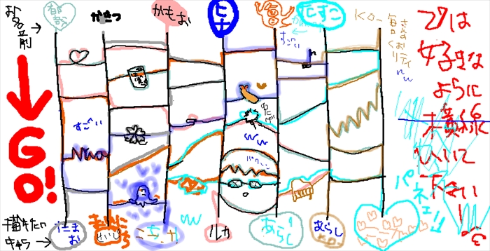よーいドン!!でアミダに好きキャラを書き込むというものです^^
