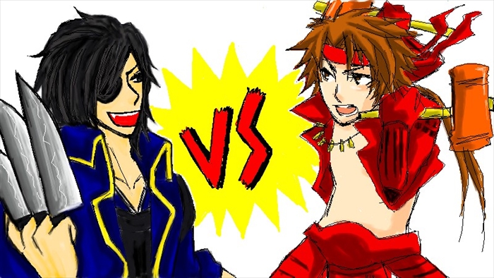 お次は『政宗&幸村で向いあってお楽しみ武器(勝手に考えたw)構えた』絵!!