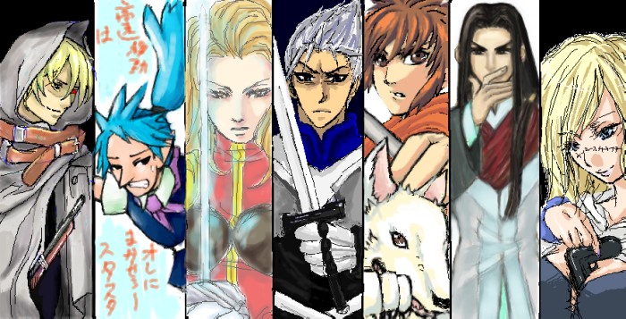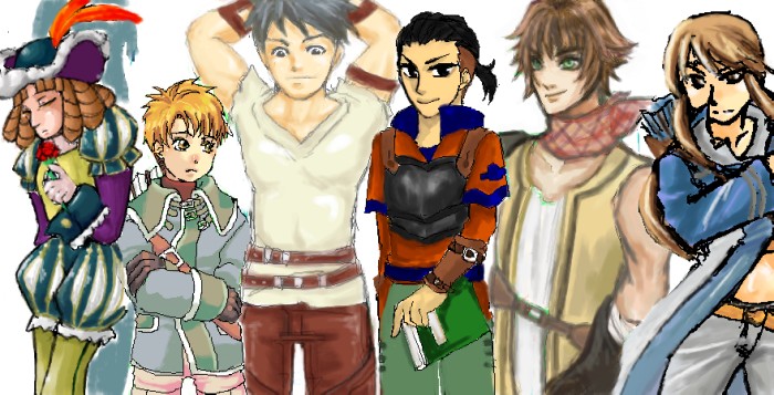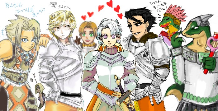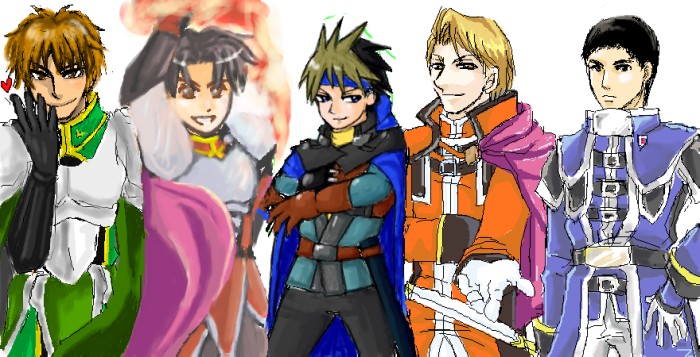 左から→:たすく、アレン:高崎さん、フリック:月野さん、カミュー:雪童さん、マイクロトフ:しきやさん