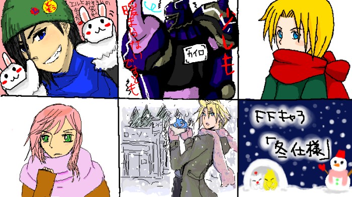 その後、月野さん、魔法使いさん、楓さんがいらっしゃり、お話しつつFFキャラの冬仕様でお絵かき!!