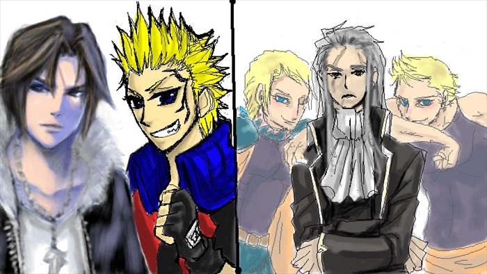左から順に→スコール(さくさん)、ゼル(たすく)、エドガー(ハナマルさん)、セッツァー(将貴さん)、マッシュ(ハナマルさん)